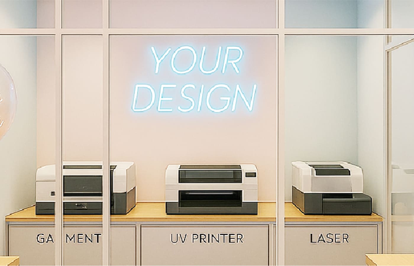 ガラス越しに刻印やプリントを見られる