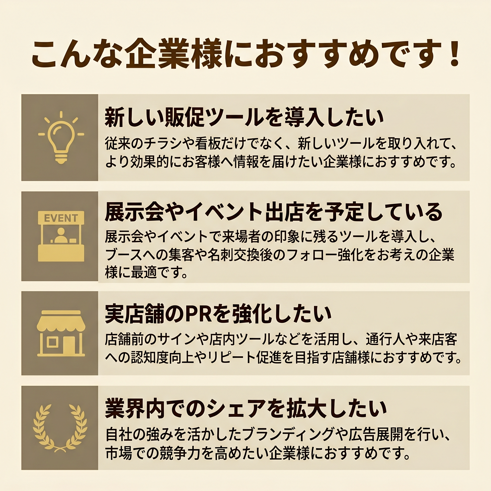 - 新しい販促ツールを検討している