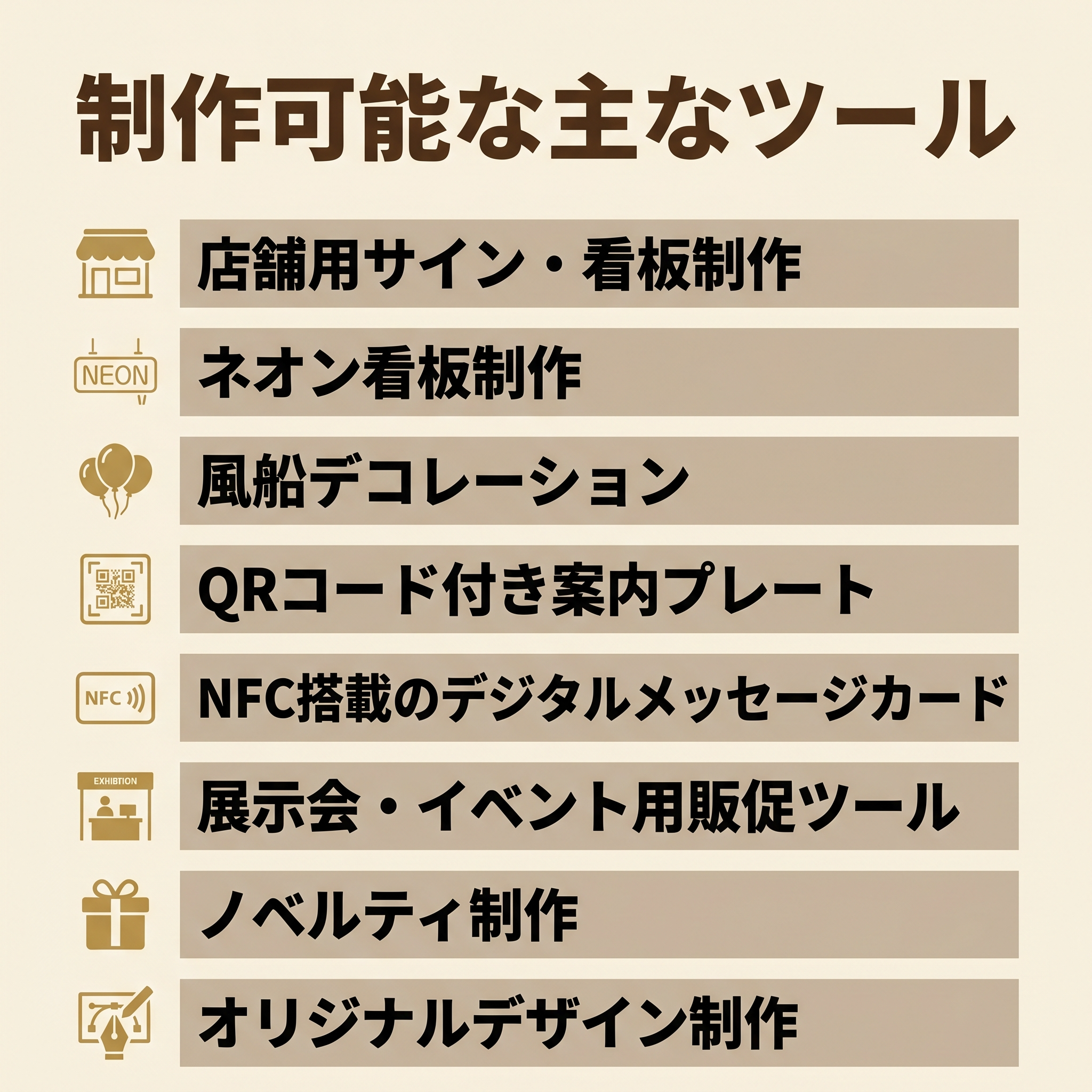 当店で対応可能な販促ツール例