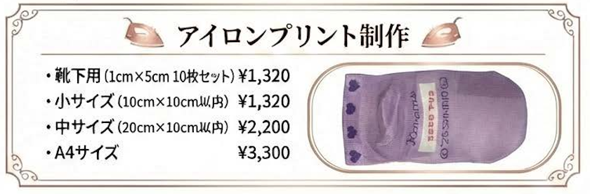 アイロンプリントの作成費用と、アイロンプレス(専用のプレス機器)の作業費用に分けております。